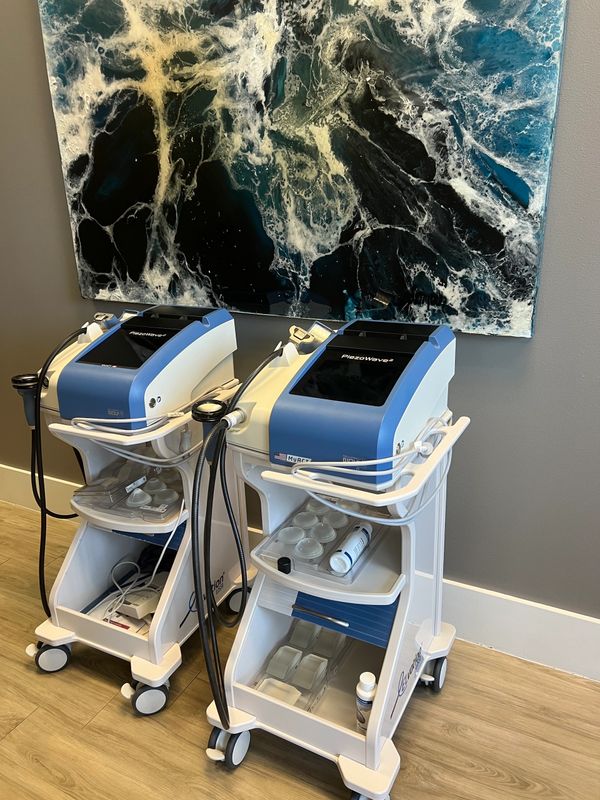 Our Shockwave machine utilizes Acoustic Compression Therapy which uses acoustic mechanical sound waves to remodel tissue at the cellular level by addressing a large variety of conditions including, scar tissue, calcification, tendinopathy, bursitis, capsulations and so much more.